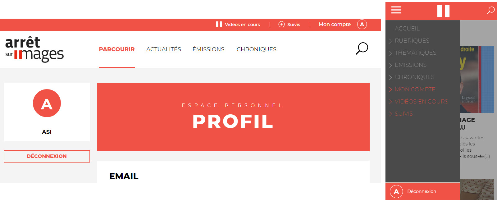 Si vous êtes bien connecté, et abonné, mais que vous constatez ce problème, rendez-vous dans l’espace "Mon compte" afin de vérifier si l’adresse e-mail du compte correspond bien à celle de votre abonnement en cours.
