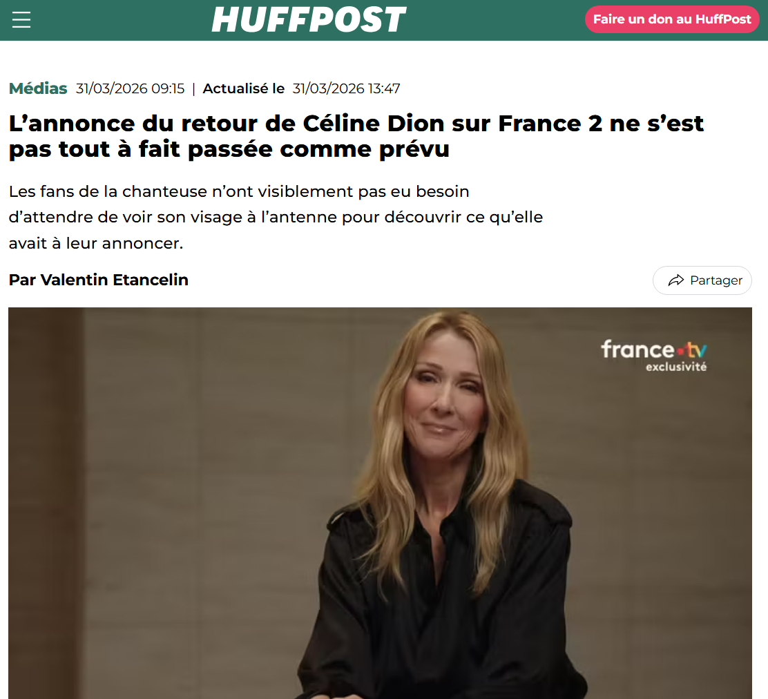 Peut-être avez-vous raté l'avalanche d'articles et de contenus relayant la promotion de la série de concerts que donnera Céline Dion à Paris dans quelques mois... ce n'est pas faute, pour le promoteur de ses concerts, AEG, et sa maison de disques, Sony, d'avoir tout fait pour que vous soyez au courant. Qui ont pu compter sur l'aide active de la plupart des médias français, en particulier France 2 avec la diffusion de sa vidéo-annonce au soir du 30 mars, et le Parisien avec des dizaines d'articles depuis deux semaines.
