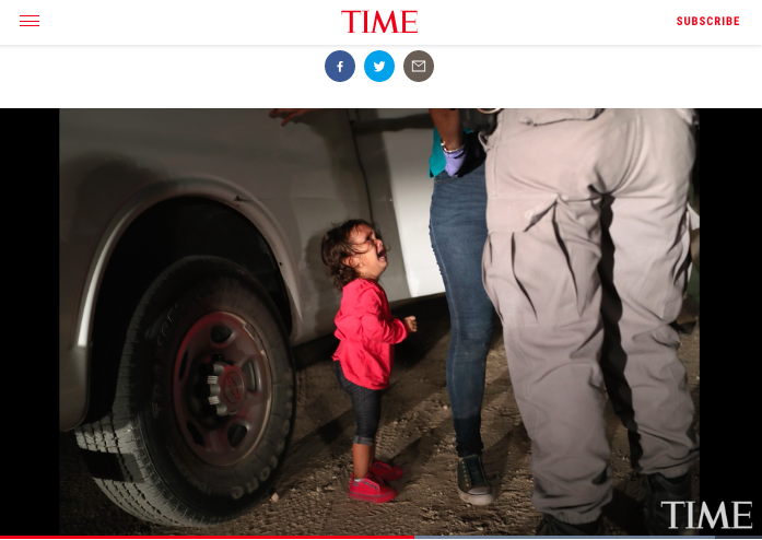 Une jeune enfant hondurienne regarde, terrifiée, sa mère fouillée et arrêtée par la police américaine aux frontières. Les pleurs et le regard d'effroi de Yanela Varela, 2 ans, ont fait le tour du monde.