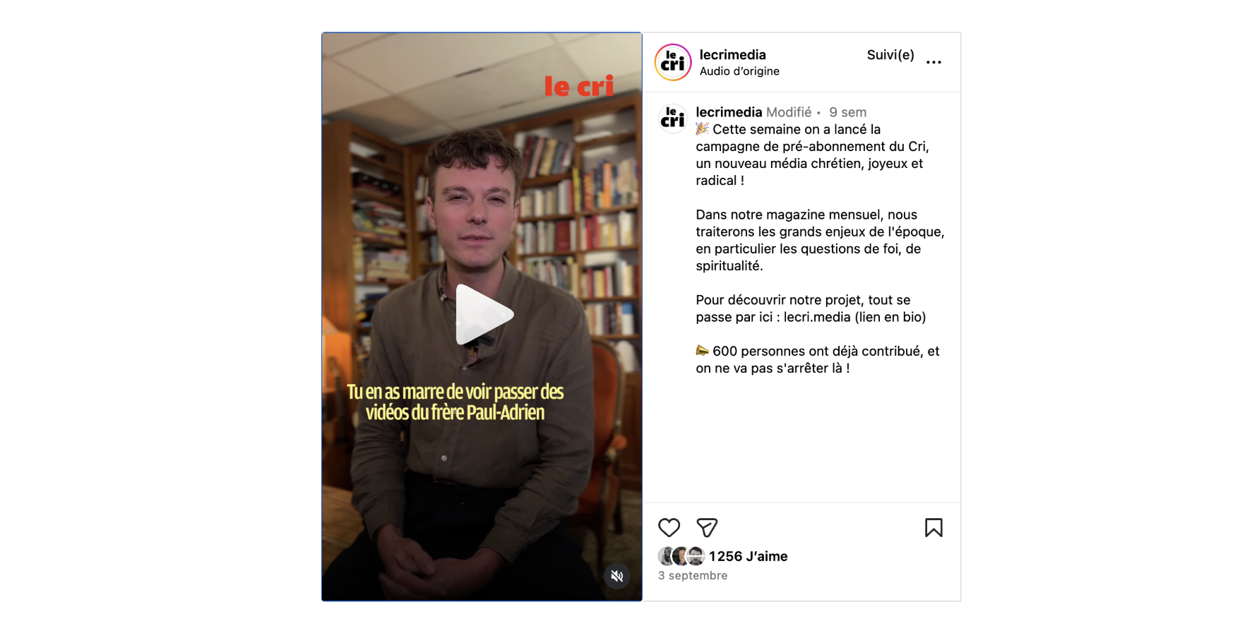 Ce qui n'empêche pas le journal d'assumer ses partis pris. Théo Moy explique à Arrêt sur images : "On ne peut pas ignorer le contexte pour le catholicisme au niveau mondial, à savoir, la montée d'une nouvelle extrême droite chrétienne. Évidemment, c'est un sujet d'inquiétude." Le premier numéro donne la parole à Guillaume Meurice, dans une longue interview, au cours de laquelle l'humoriste est interrogé sur "le riche catholique qui finançait la droite bon teint" devenu "très interventionniste" et proche de l'extrême droite, prêt à "presque acheter le pouvoir". Le Cri n'a pas peur des oppositions. Dans l'une des vidéos de lancement, Théo Moy demande ainsi : "Tu en as marre de voir passer les vidéos du frère Paul-Adrien quand tu scrolles ? Tu ne te résous pas à la droitisation des églises ?", avec une image de Pierre-Edouard Stérin.