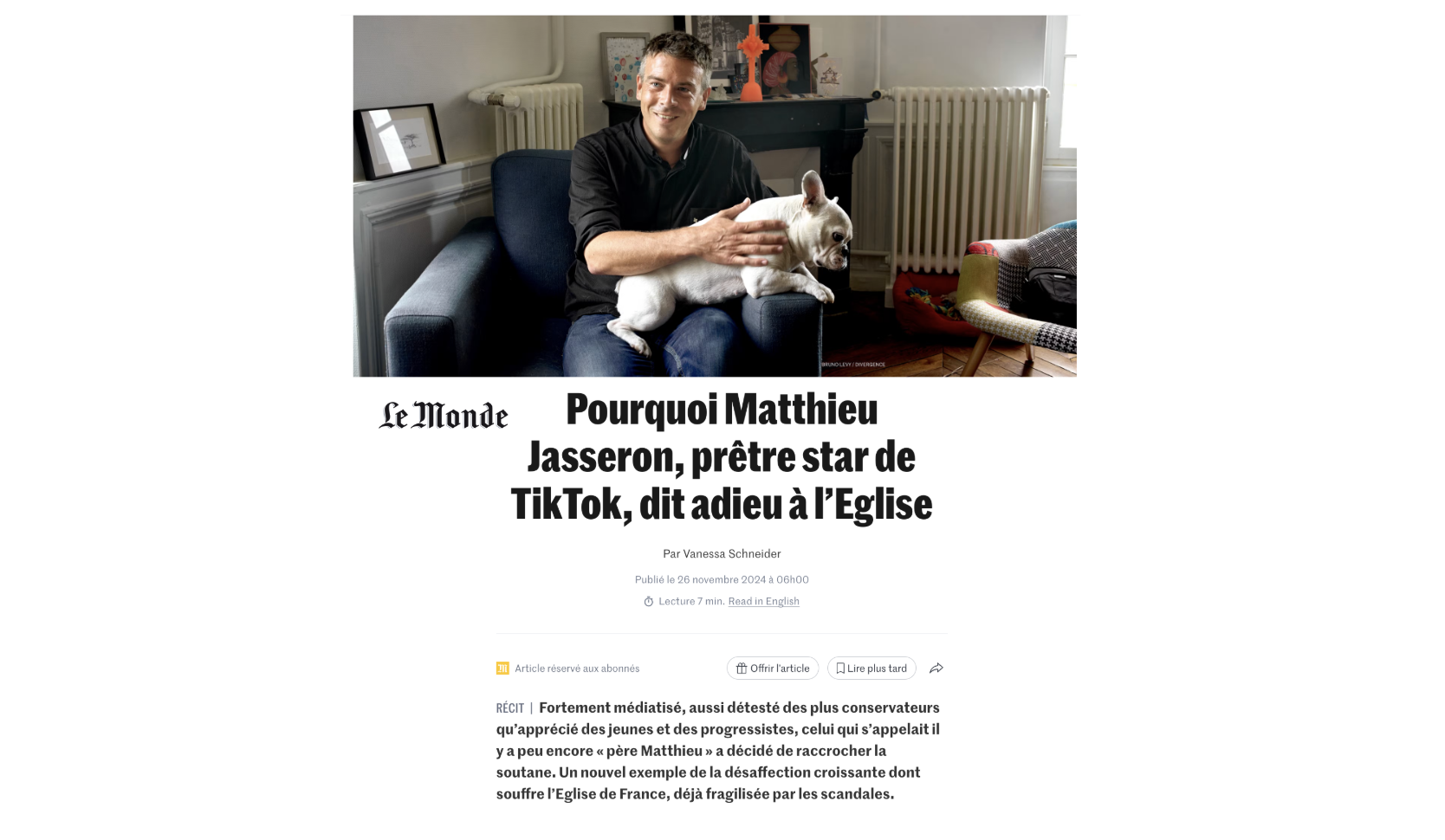 L'abbé Raffray voit les choses différemment. Il ne croit pas à l'indépendance du Cri. "De quel droit se disent-ils chrétiens ? Qui les finance ?" Le magazine "ne fait que reprendre le discours majoritaire dans les médias aujourd'hui : dire du mal de Trump, parler d'écologie. Ce sont des sujets mainstream subventionnés par un système et par l'État." La "diversité médiatique", selon lui, n'existe que depuis "quatre-cinq ans". Où la trouve-t-on ? Chez Bolloré, répond l'abbé. Qui lâche : "Réjouissez-vous qu'il finance la presse indépendante".