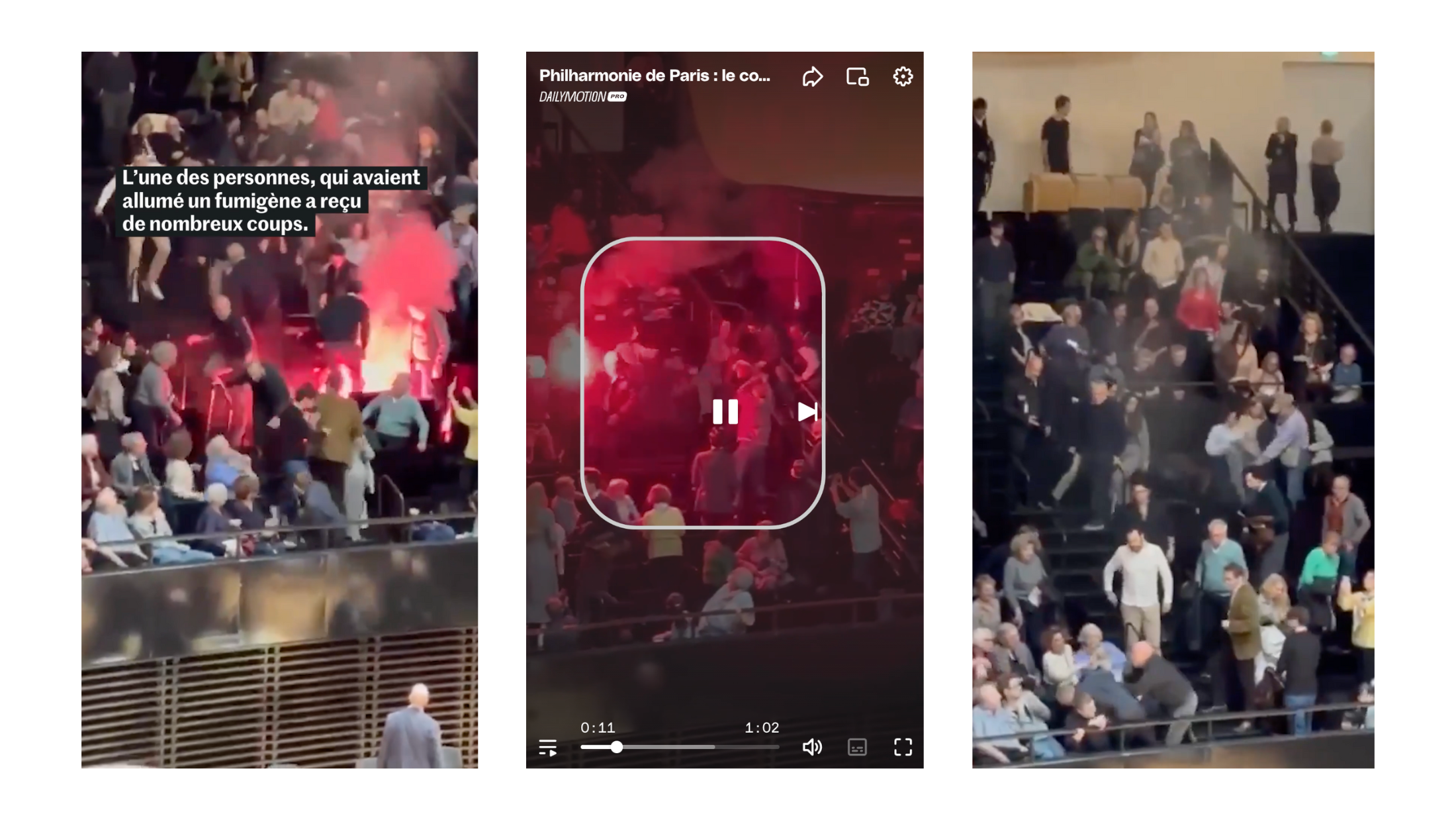 C'est même plutôt l'inverse. Comme en témoignent les vidéos diffusées sur les réseaux et reprises par tous les médias, les seules personnes violentées sont les militants de Palestine Action France. Deux militants sur les trois qui ont successivement interrompu le concert, ont été violemment agressés par les spectateurs. Le second s'est levé de son siège et a "allumé une torche avant de se faire tabasser par plus d'une dizaine de spectateurs qui lui ont ouvert le crâne"