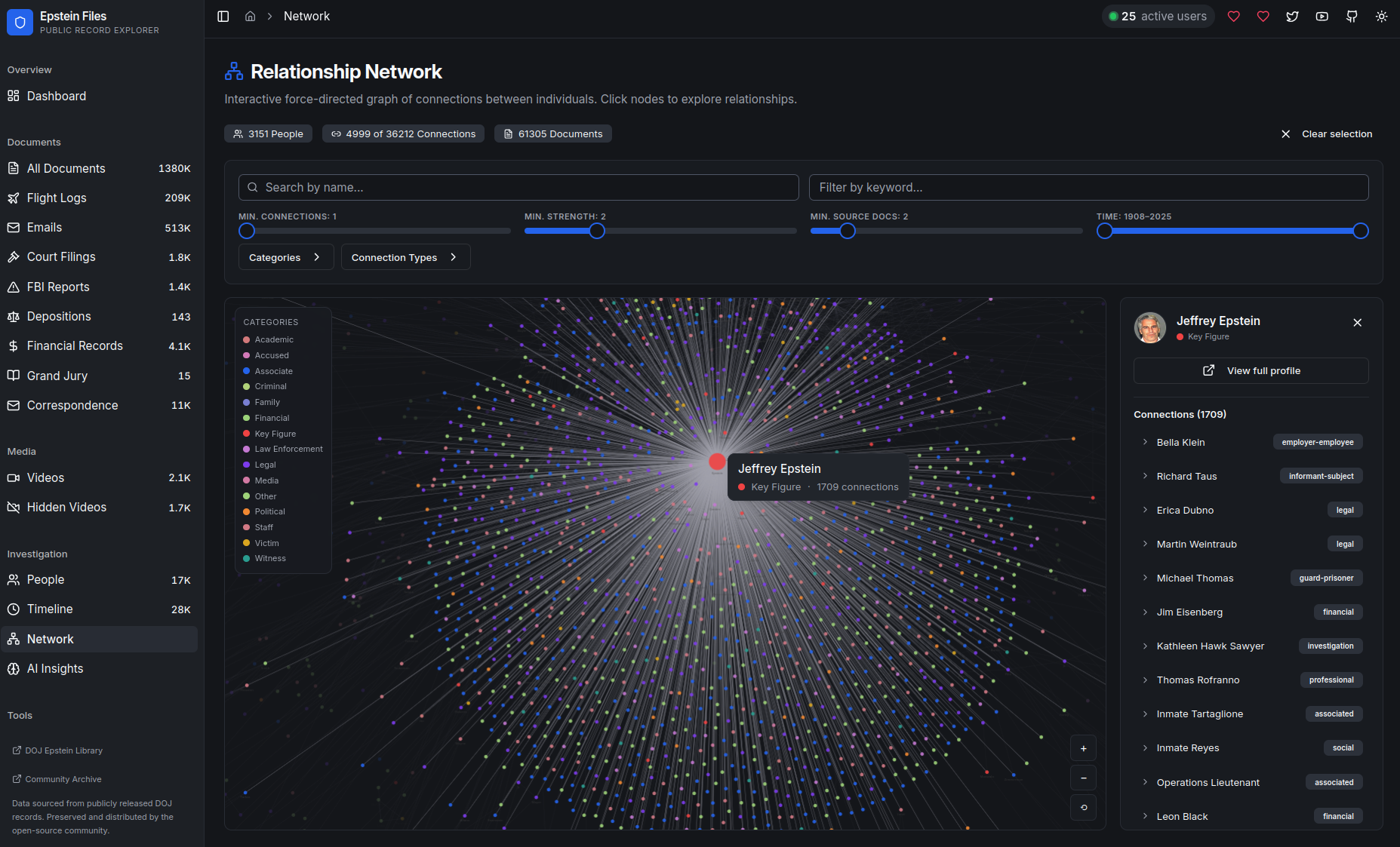 En quelques jours, des outils collaboratifs émergent pour indexer la bibliothèque de l'infâme par nom, par date, par relation, par mot-clé - peu importe, pourvu que des lignes se dessinent, littéralement. Charge ensuite à chacun d'y faire émerger la silhouette qu'il veut. L'exégèse collective de Reddit bat son plein. Jimail vous place dans la boîte Gmail d'Epstein. JeffTube permet de naviguer dans les vidéos contenues dans les dossiers. EpsteIN vous permet de savoir qui, parmi vos contacts LinkedIn, se trouve dans les "Files". Au terminus des idées à la con, certains font évidemment analyser les 300 gigaoctets de données par des chatbots pour les interroger dessus - oubliant un peu vite que ces systèmes sont conçus de manière à produire des mensonges statistiques. D'autres demandent à Grok, le chatbot d'Elon Musk qui génère de la pédopornographie en masse, de "révéler" les visages caviardés.