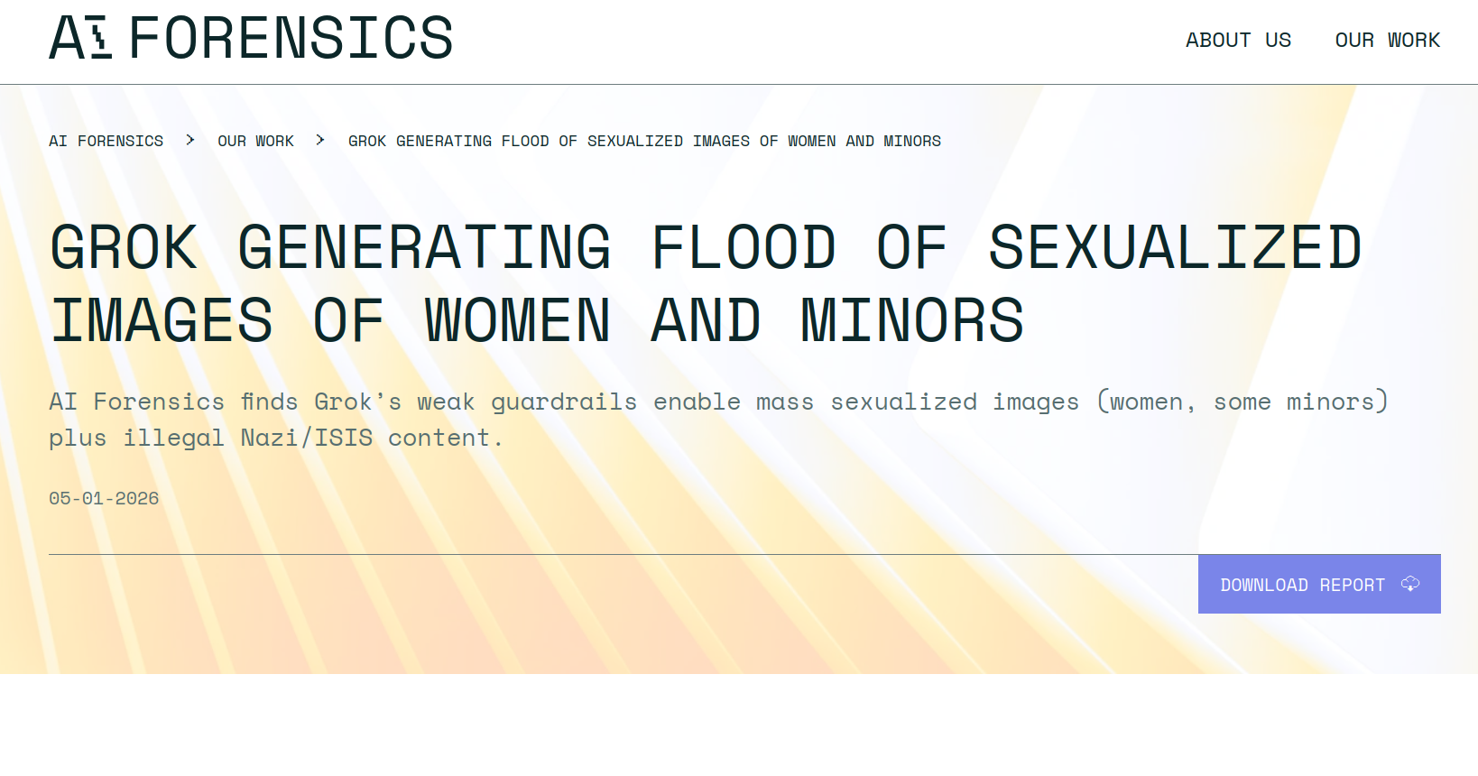 Le phénomène n'est pas tout à fait nouveau : Grok propose l'édition d'images depuis mars 2025 et un "mode Spicy", réservé "aux créateurs qui souhaitent explorer des univers plus visuellement osés et edgy", depuis fin octobre 2025. Dès le mois de mai, des utilisateurs de la plateforme X utilisaient le logiciel pour générer ce genre d'images, comme le rapportait le site spécialisé 404 Media. Ce qui a changé, courant décembre, c'est que la pratique s'est massifiée. Entre le 5 et le 6 janvier, selon Bloomberg, le logiciel a généré 6700 images de nudité non-consensuelle toutes les heures. (Parallèlement, les cinq plus gros sites fournissant un service de deepfake similaire en généraient 79 par heure.) Selon le rapport de l'ONG française AI Forensics, sur 20 000 images générées par le logiciel, 53% présentent des personnes dénudées, dont 81% de femmes, 2% de mineurs et 6% de personnalités publiques. (Parmi ces dernières, Ashley St Clair, mère de l'un des 14 enfants d'Elon Musk ; Nell Fisher, actrice de la série Stranger Things, âgée de 14 ans ; Ebba Busch, vice-première ministre suédoise, ainsi que deux ministres britanniques.)