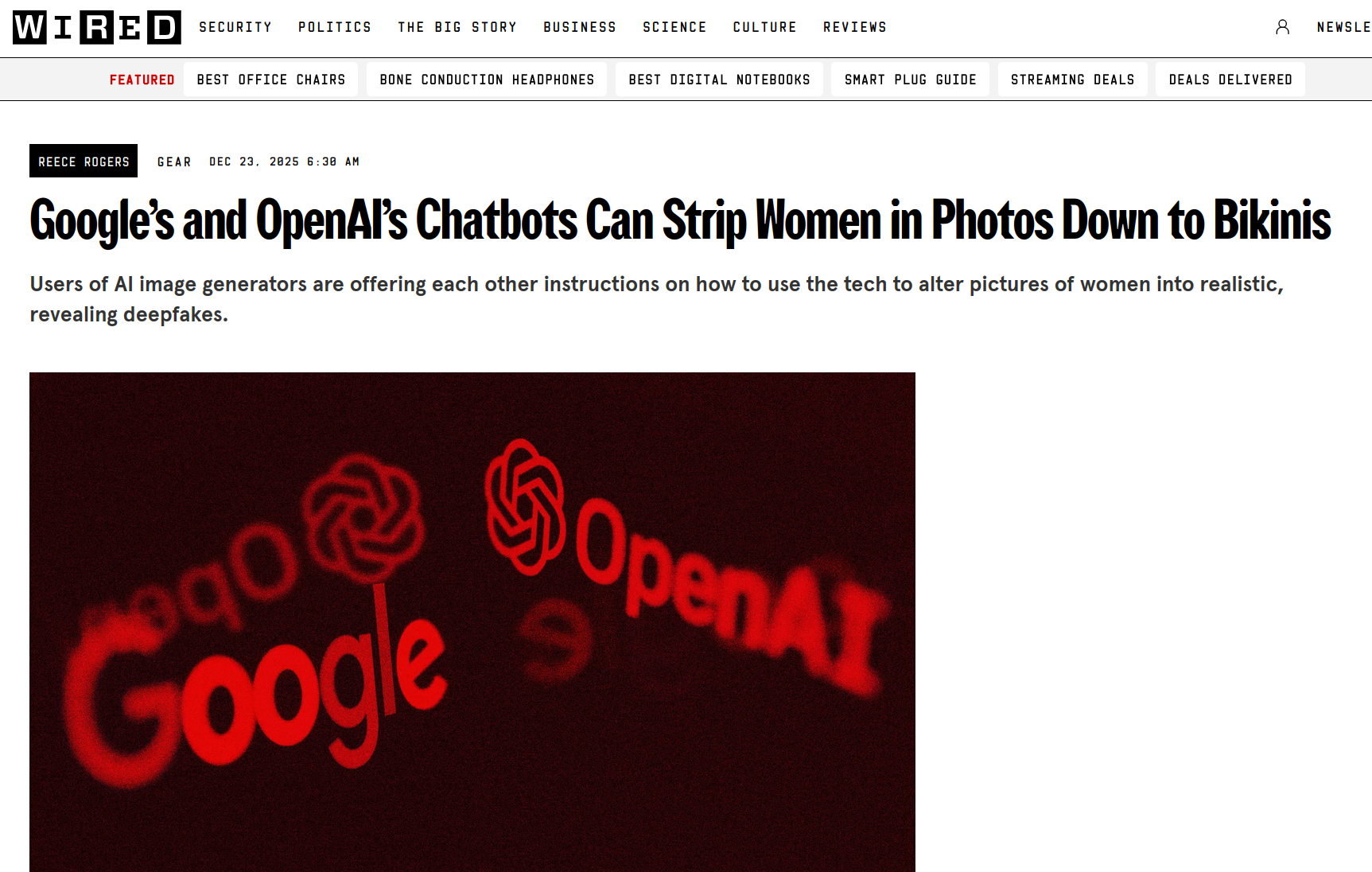 Pire encore, AI Forensics a découvert que Grok pouvait également générer du contenu à caractère de propagande nazie et pro-État islamique. Le 7 janvier, Wired révélait, à nouveau en partenariat avec AI Forensics, que le site et l'application Grok, distincts de la plateforme X mais appartenant à xAI, permettent d'aller encore plus loin et de générer des vidéos mélangeant pornographie et imagerie gore et violente, hentai (manga à caractère pornographique) et deepfakes de célébrités. 10% des 800 photos et vidéos observées par l'ONG concernent du matériel pédopornographique. Les premiers jours de janvier, rapporte le Guardian, les demandes empirent. Bikinis couverts de svastikas. Corps de femmes recouverts d'un liquide blanchâtre, couverts de bleus, ensanglantés, corps attachés. Corps de femmes racisées sexualisées dans des situations de déportation. Photo de Renee Nicole Good, assassinée de sang-froid par l'ICE, modifiée par Grok pour y ajouter des impacts de balle. Convergence des humiliations.