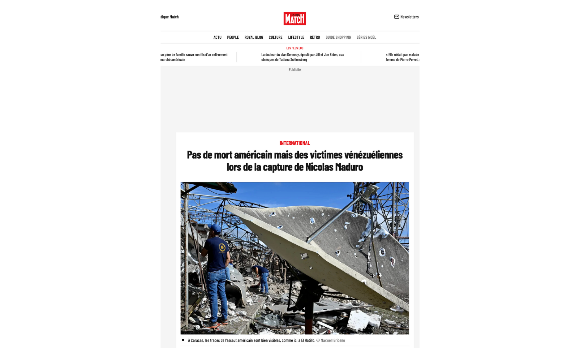 alors que les bombardements ont visé le territoire vénézuélien pose question. Et ce d'autant qu'il y a (pour le moment) au moins deux victimes civiles vénézuéliennes. L'information mise en avant est pourtant ici l'absence de mort américain et non l'existence de morts vénézuéliens et cubains, relégués en seconde place, derrière ce "mais". Y aurait-il une hiérarchisation des victimes ?