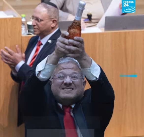 Prenons un autre méchant incontesté : le monstrueux ministre israélien de la Sécurité nationale Itamar Ben Gvir. Il s’est fait filmer, arborant un pin’s en forme de noeud coulant, et sablant le champagne après le vote par la Knesset du rétablissement de la peine de mort pour les seuls "responsables de meurtres commis au nom du refus de l'existence d'Israël",