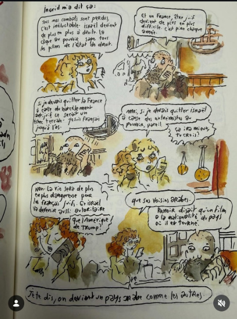 un édito fermement réprobateur de sa consoeur Abnousse Shalmani. Mais je pourrais allonger la liste, par exemple avec le dessinateur Joann Sfar, qui a publié sur son compte Instagram une courte BD, déplorant que Israël devienne par la faute de Ben Gvir "un pays arabe comme les autres"