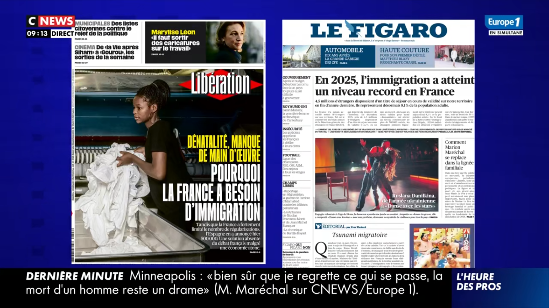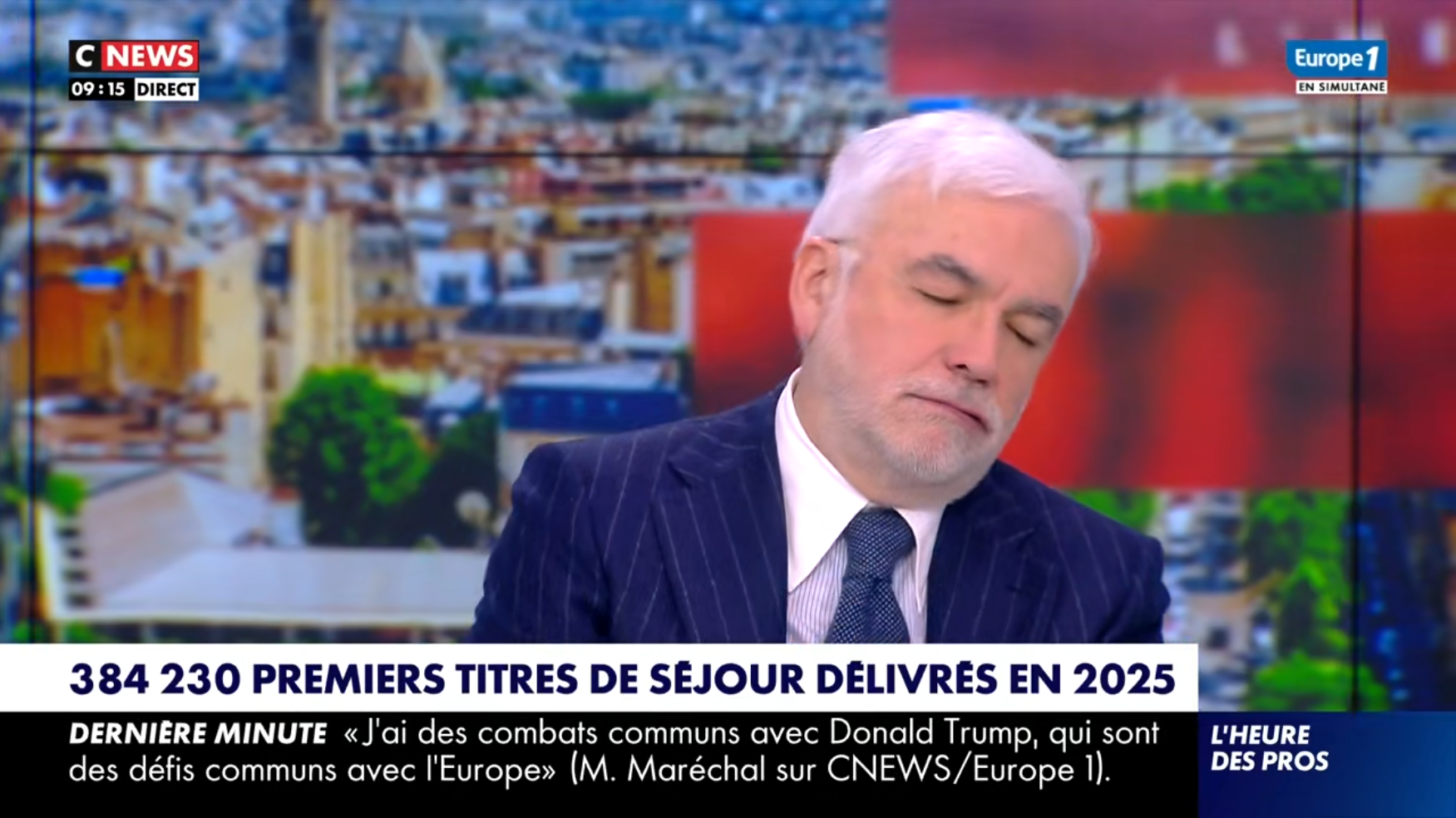 Oui, mais Bolloré le paye pour ça. Alors pour le chauffer un peu, ce mercredi 28 janvier, la production lui a mis sous le nez la Une de Libération qui présente l'immigration sous un jour positif alors que les chiffres sont en hausse (+11,5 % de nouveaux titres de séjour en 2025 par rapport à l'année précédente).